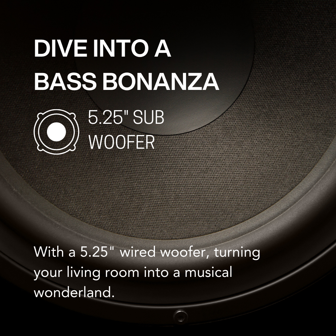 Dive into a bass bonanza with a 5.25" wired woofer, turning your living room into a musical wonderland.